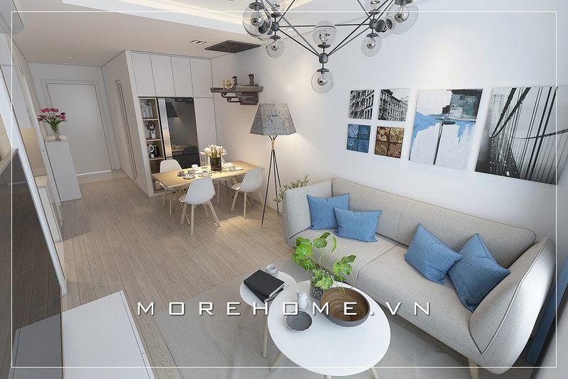 Không gian chung cư nhỏ hiện đại với mẫu sofa văng ba tiện lợi cùng chất liệu vải êm ái tone xám tinh tế.