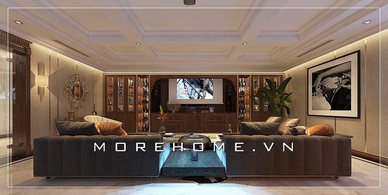 Để làm nên không gian nhà phố, nhà biệt thự sang trọng, trang trí nội thất phòng khách bằng sản phẩm kệ tivi kết hợp tủ rượu tân cổ điển gỗ óc chó thượng hạng sẽ làm cho không gian trở nên đẹp và tinh tế hơn.