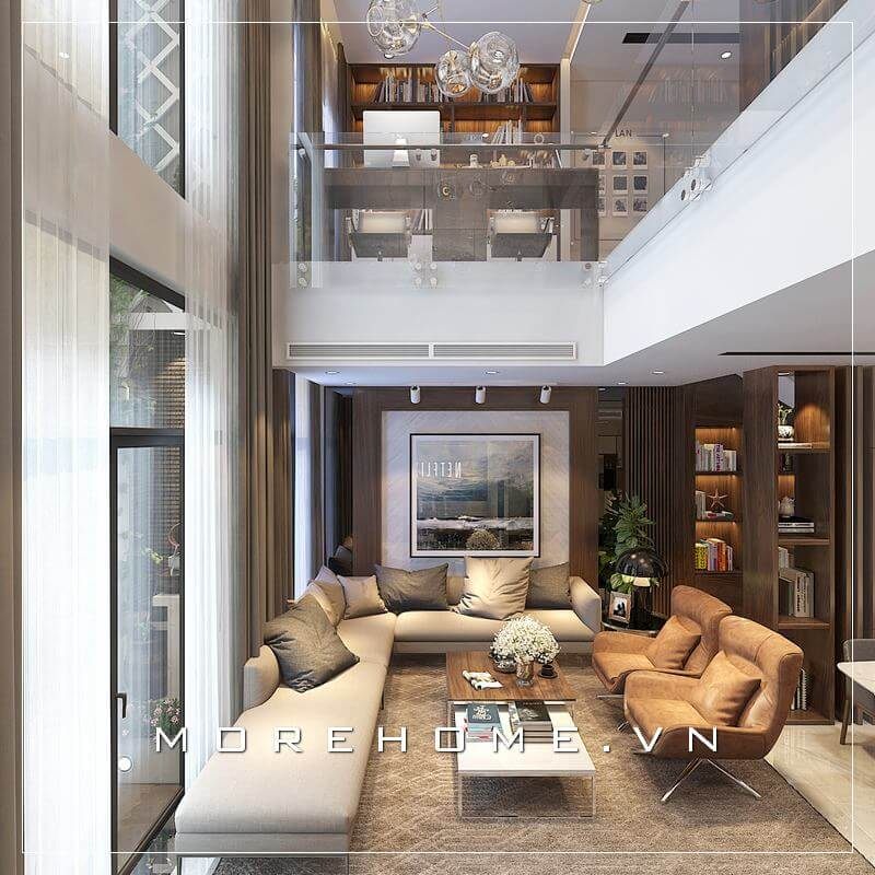 Một mẫu thiết kế phòng khách sang trọng và đẳng cấp cho biệt thự được tạo ra bởi sự kết hợp hài hòa giữa các màu nội thất độc đáo, tạo nên một không gian thu hút.